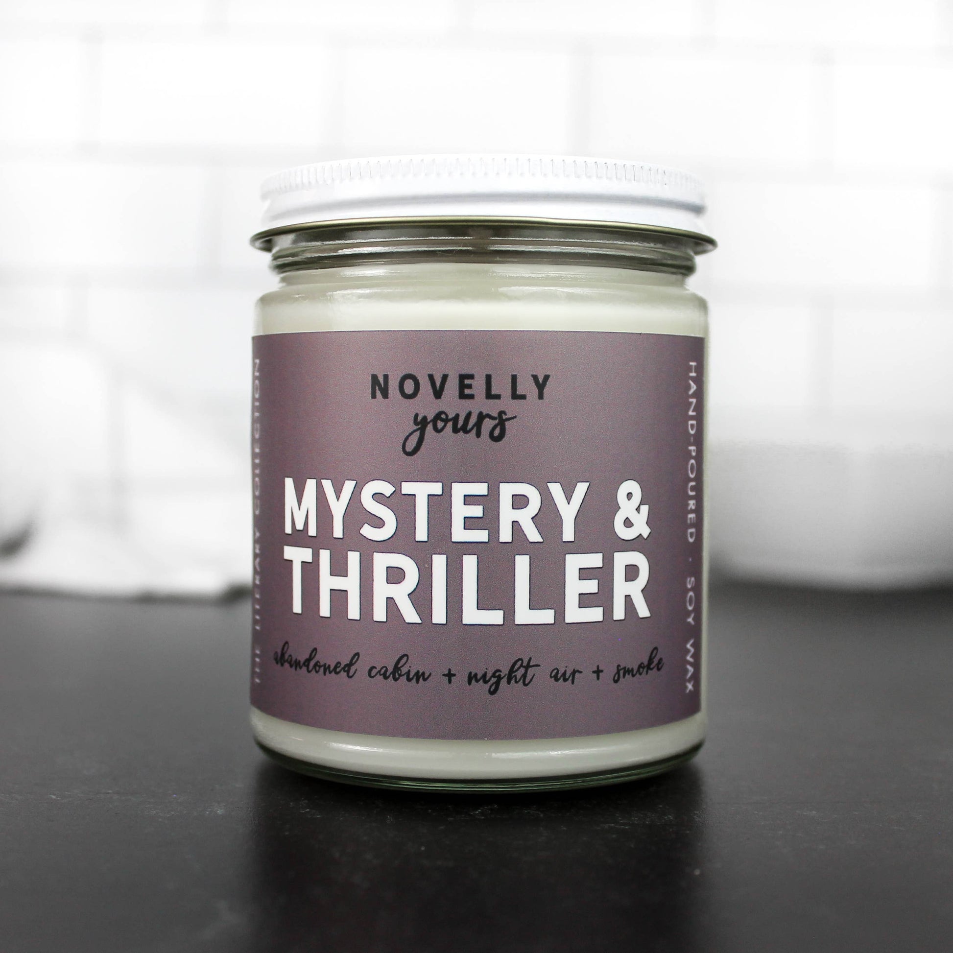 Part of the Novelly Yours literary candle collection, this 9 oz. Mystery and Thriller candle is inspired by the mysterious atmosphere of thriller novels. Scents of abandoned cabins, night air, whispering wind, and smoke.